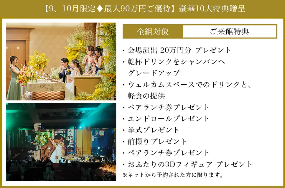 適用期間2025/08/01〜2025/10/3112月〜3月にご披露宴をご検討の方限定